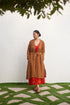 - Handcrafted linen in brown hue.